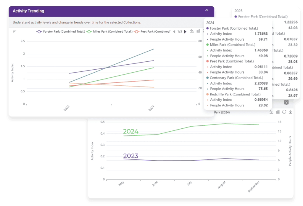 With a wide range of parks and open spaces across the City, the Parks team wanted a clearer picture of which locations were seeing the most community use. By leveraging monthly Movement Data reports and suburb-level people activity graphics, the City developed a streamlined reporting process to track park usage.