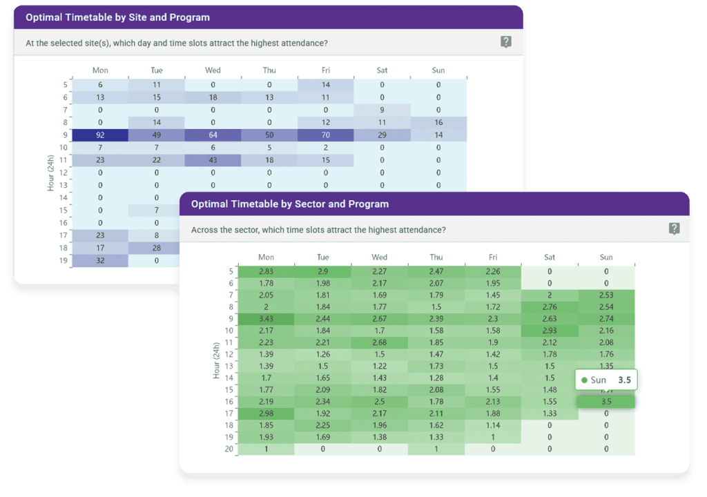 Discover the optimal days and times for each program to maximize engagement with your target demographics or entire member base.