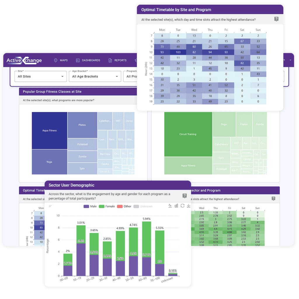 The Programs Module shows which classes work best, when people attend, and how your programs compare with the wider market. With live benchmarks and demographic insights, you can refine timetables, fill participation gaps and build campaigns that deliver greater engagement and value.