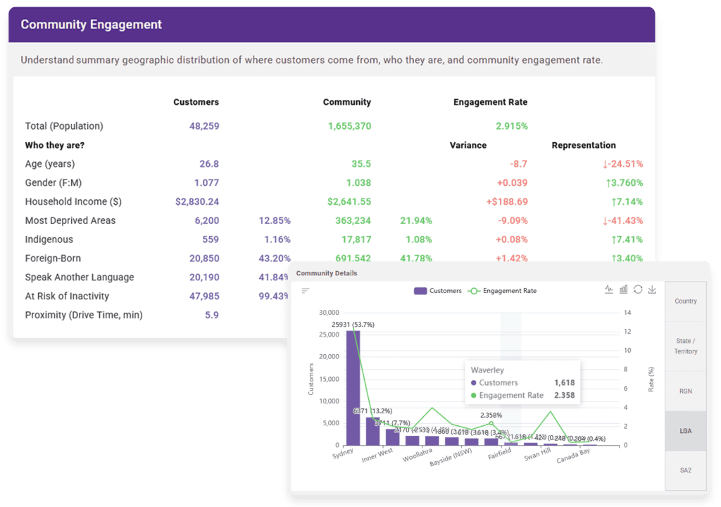 Community Reach helps you understand how representative your member and participant base truly is, and where opportunities exist to engage those currently missing out.