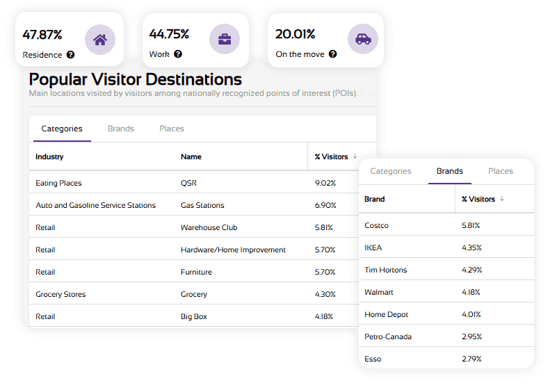 Real footfall and usage data for facilities, parks, trails and open spaces. Raw device data is continually processed and validated against the industry’s largest network of ground truth sources.