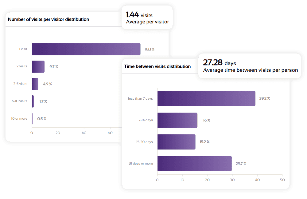 Find out how long visitors stay and how that varies by time of day, day of the week and visitor type. Longer dwell times signal deeper engagement, and shorter ones can highlight friction points worth addressing.