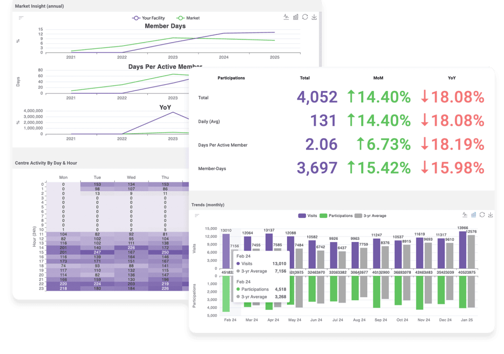 Operate helps enhance resource allocation for recreation facilities by providing a clear view of member demographics, membership levels, and engagement trends over time. It compares current and historical performance with broader market trends, enabling data-driven decisions on where to invest, allocate resources, and plan recreation services.