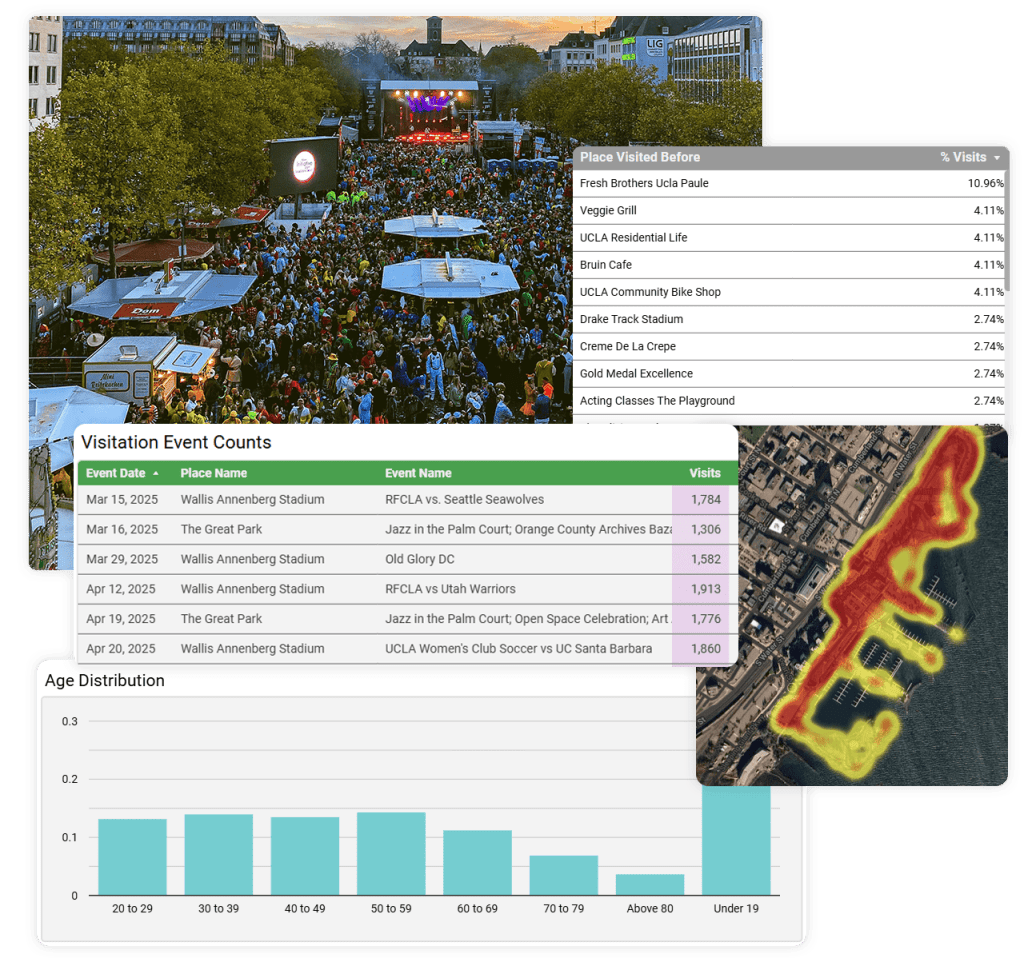 Use real-world population insights and movement data to identify where demand exists for events, plan venue use across your calendar, attract partners that align with your audience, and demonstrate community and social impact.